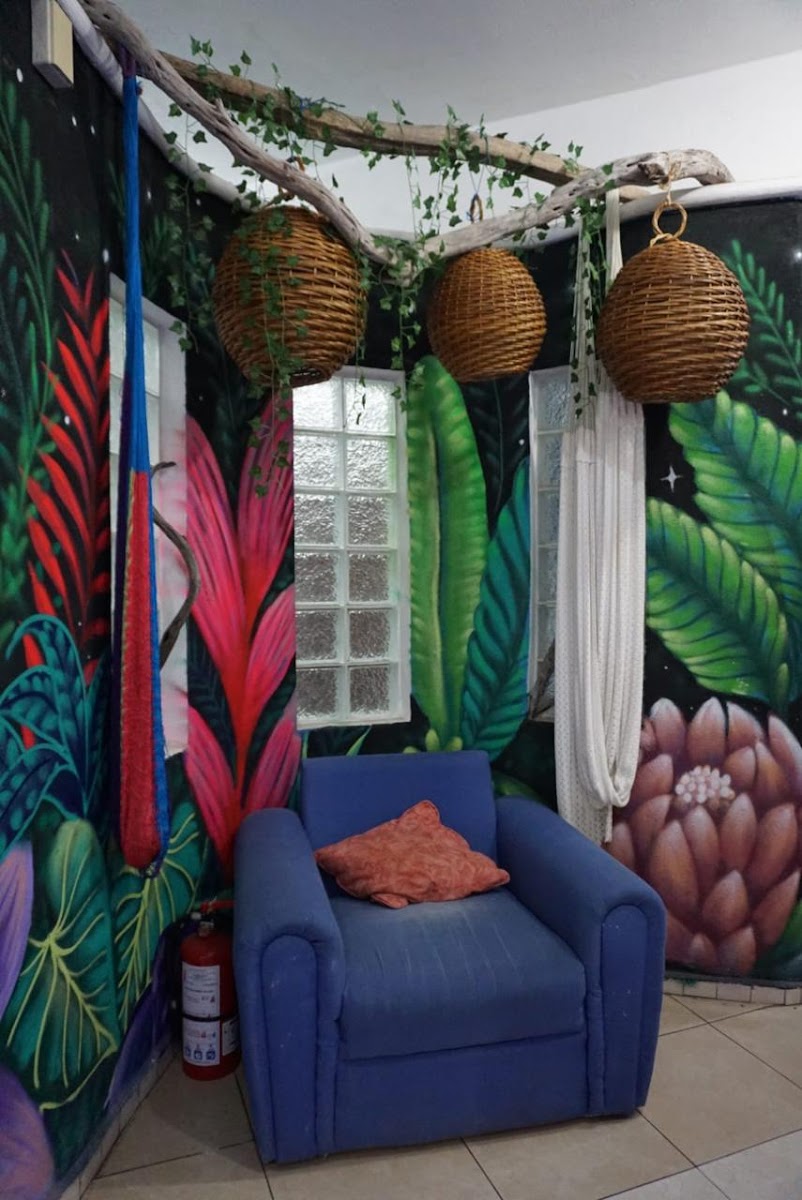 Great hostel/hotel to stay at in Central Cozumel. Two kitchens, two pools and two "tree" elevated locations for relaxing. Four blocks from grocery store and plenty of bars and restaurants surround the area. 15 min walk to beach.